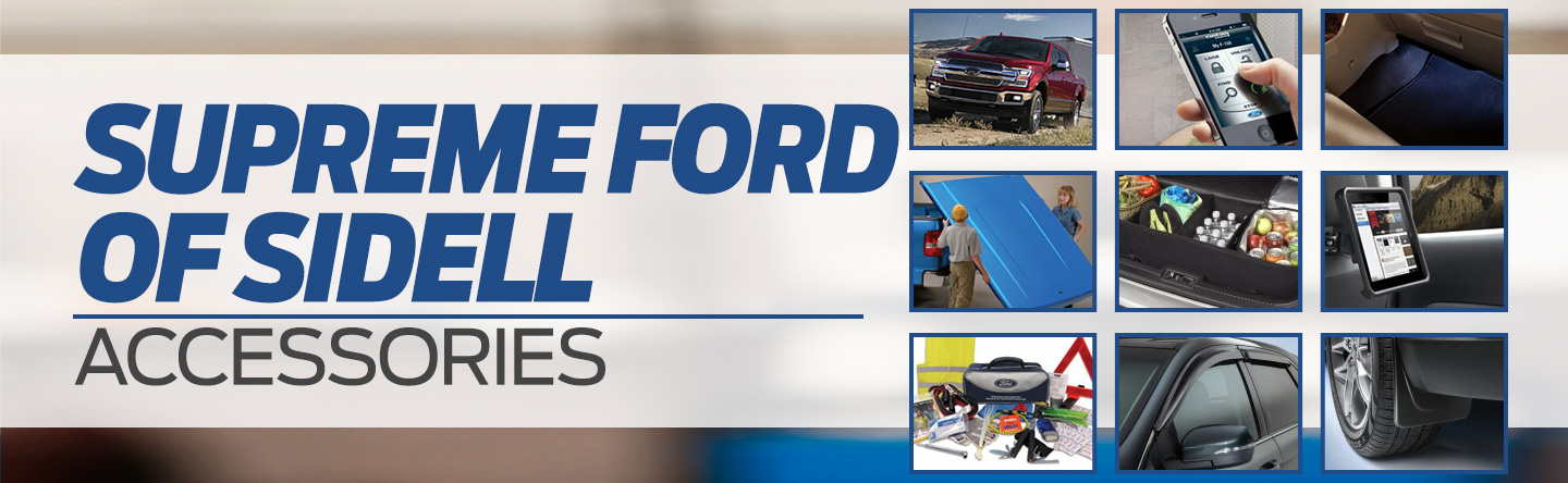 Shop for genuine Ford accessories at Supreme Ford in Slidell, LA - serving New Orleans, Metairie, and Chalmette - and find everything you need to create the functional and practical vehicle of your dreams. Our large selection of Ford accessories has plenty of options when it comes to protection, convenience, and style. Whether you're looking to add some floor mats to protect your interior carpet or a graphics package to increase your curb appeal, we have the genuine Ford accessories you need.