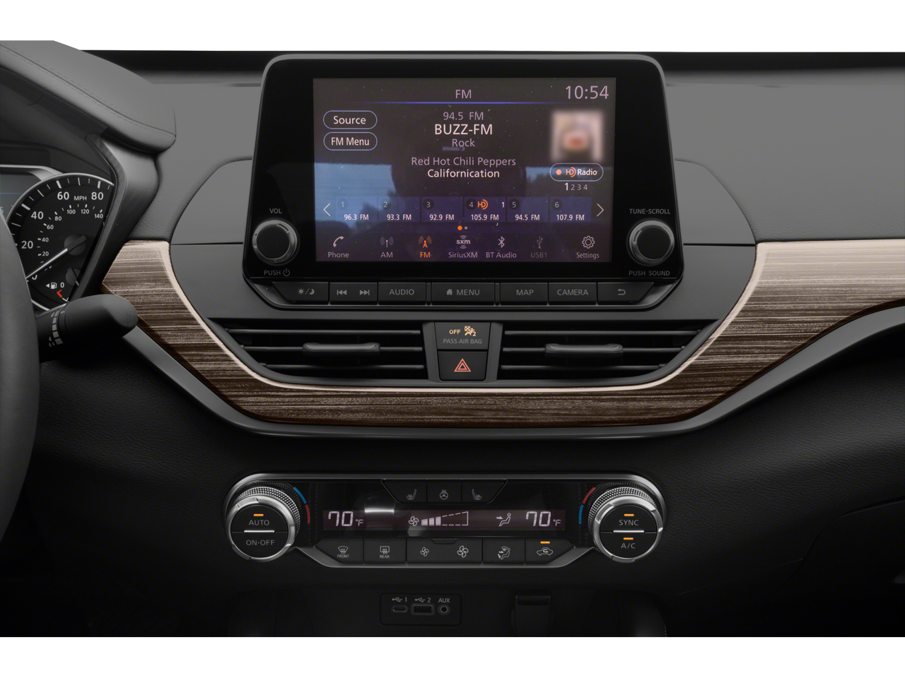 - Radio: AM/FM Audio System -inc: RDS, MP3, aux-in, 6 speakers, NissanConnect featuring Apple CarPlay, Android Auto, 8" color display w/multi-touch control, 1 front illuminated USB port (type-C) for compatible devices, SiriusXM radio w/advanced audio features, Bluetooth® hands-free phone system, streaming audio via Bluetooth®, hands-free text messaging assistant, 2 rear illuminated USB ports (type-A, 1 type-C) for compatible devices, Siri Eyes Free/Google Assistant voice recognition