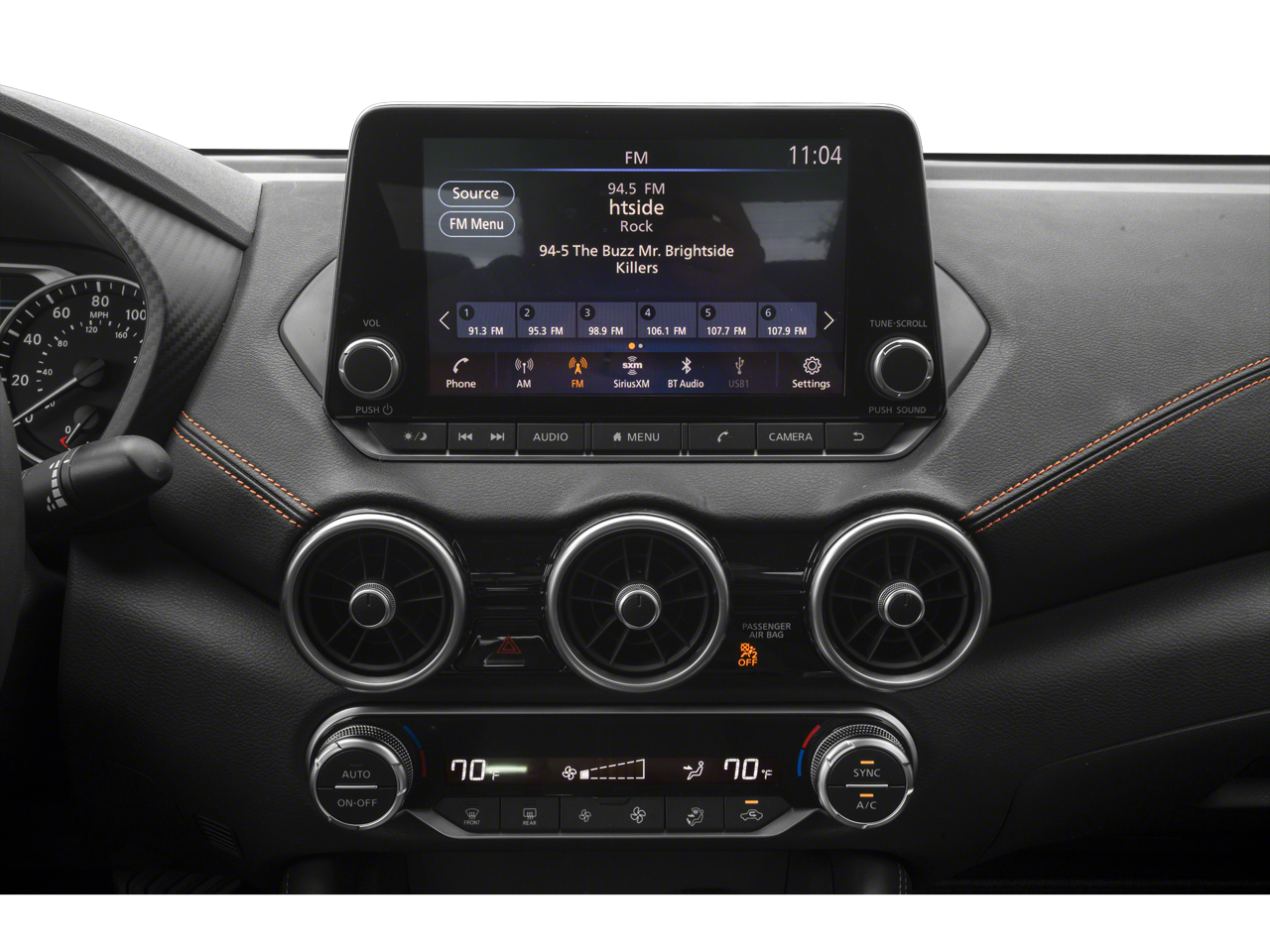 - Radio: AM/FM w/RDS/MP3/Aux-In -inc: 6 speakers plus 2 tweeters in A-pillar, 8" color display w/multi-touch control, streaming audio via Bluetooth®, Bluetooth® hands-free phone system, hands-free text messaging assistant, Siri eyes free, Google Assistant voice recognition w/Apple CarPlay and Android Auto, NissanConnect, (1) front USB connection port (type A), (1) additional front USB (type C) and (1) charge-only USB (type A) center console and SiriusXM radio w/advanced audio features