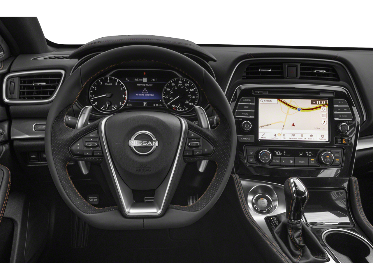 Step inside the Maxima SR and be captivated by the premium Ascot leather-appointed seats, which offer exceptional comfort and support. The NissanConnect system with Apple CarPlay and Android Auto integration keeps you connected and entertained, while the 11-speaker Bose audio system provides a concert-hall-like experience.