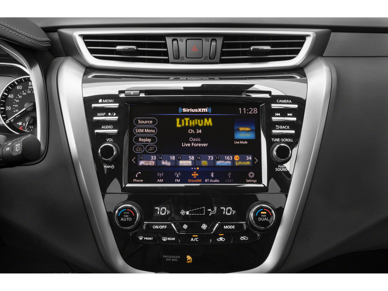 The Murano SL is equipped with a wealth of premium features that will elevate your driving experience. Enjoy the convenience of the NissanConnect Navigation system, the clarity of the 11-speaker audio system, and the comfort of the heated front seats and leather-appointed seating. The power liftgate and dual-panel moonroof add a touch of elegance, while the Blind Spot Warning and other advanced safety features provide peace of mind on the road.